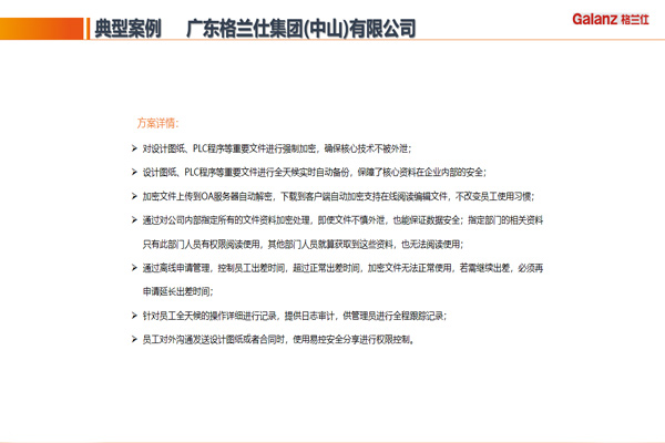 没有人授权的情况下,笔记本私自带离开公司,上面的加密文件就都打不开了,为了满足客户的出差需求,外出人员出差前,可以给到他一定的离线权限:在设定时间内,出差人员除了可以打开笔记本上的加密文件外,是否可以对加密文件进行编辑、修改、打印等权限可以一并先设置好,笔记本带出去才可以用。因为外带的电脑里面的文件是加密状态,所以不用担心员工在出差过程中的拷贝或者外发风险。